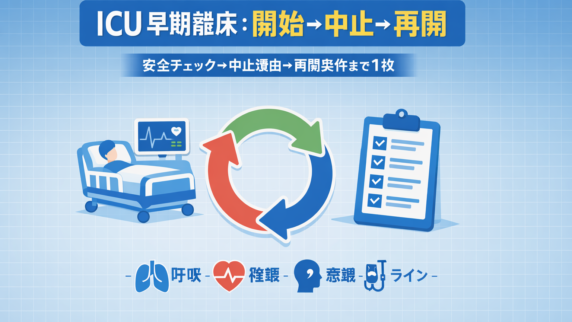 臨床手技・プロトコル NPPV( NIV )装着中の離床・運動療法|観察と記録 NPPV 装着中の離床・運動療法を「開始条件→観察→中止基準→記録」で整理。マスク不適合・同調不良など詰まりどころも対策まで解説。 2026.02.05 臨床手技・プロトコル