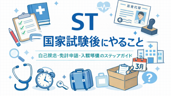 キャリア ST 国家試験後にやること|自己採点〜免許申請 2026 ST 国試後に迷わないために、自己採点→合格発表→免許申請→入職準備の順番を 1 ページで整理します。一次情報リンクもまとめました。 2026.02.22 キャリア