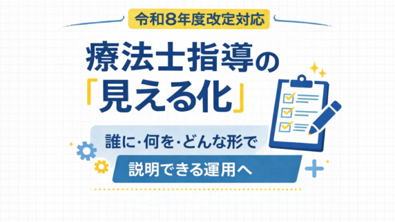 制度・実務 疾患別リハ/特定入院料の療法士指導推進|令和 8 改定 令和 8 改定の論点「療法士の専門性を活かした指導等の推進」を、疾患別リハと特定入院料でどう運用・記録するか、テンプレと失敗例で整理します。 2026.02.05 制度・実務