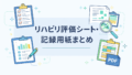 評価 リハビリ評価シート・記録用紙まとめ リハビリで使える評価シート・記録用紙・チェックリストを一覧で整理。ADL・IADL、栄養、嚥下、呼吸、神経・疾患別、制度・実務まで対応記事から探せます。 2026.03.20 評価