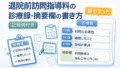 制度・実務 退院前訪問指導料の診療録・摘要欄の書き方【記載例付き】 退院前訪問指導料の診療録と摘要欄の書き方を実務向けに整理。2 回算定時の訪問日記載、病状・家屋構造・介護力・指導内容の残し方、確認で止まりにくい記載例までまとめます。 2026.04.12 制度・実務