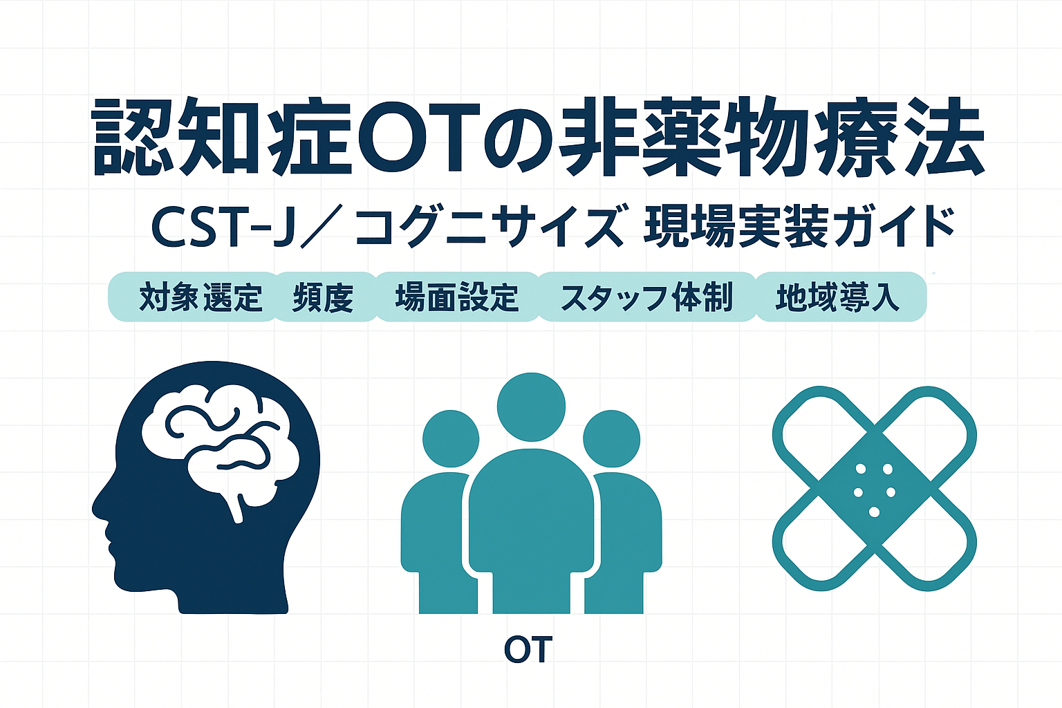 疾患別 認知症 OT の非薬物療法:CST-J/コグニサイズ“現場実装” CST-J とコグニサイズの導入を“現場でそのまま使える”形に。対象選定、頻度、場面設定、スタッフ体制、評価設計、地域導入の手順を実例で解説。印刷ボタン付きの「導入可否スクリーニング票」と「8〜14 回セッション計画テンプレ」付き。 2025.10.21 疾患別