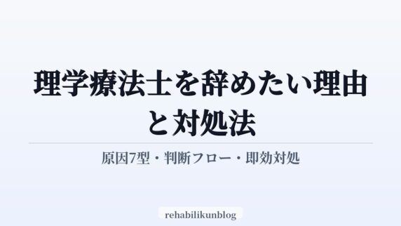 キャリア 理学療法士を辞めたい理由と対処法 “辞めたい”の原因を7型に整理し、48時間の即効対処と1–3ヵ月の中期策、配置転換や転職の判断フローまで実務目線で解説。部署別の忙しさマップとモデル日課も掲載。 2025.10.23 キャリア