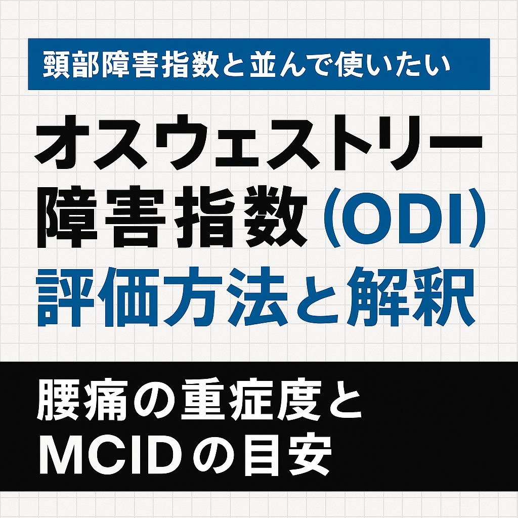 QuickDASH は上肢(肩・肘・手)の痛みや使いづらさを 11 項目で評価する患者立脚型質問票です。構成と採点方法、スコア換算式、MCID・MDC の目安、DASH・Hand20 など他スケールとの使い分け、理学療法・作業療法での活用例を整理します。