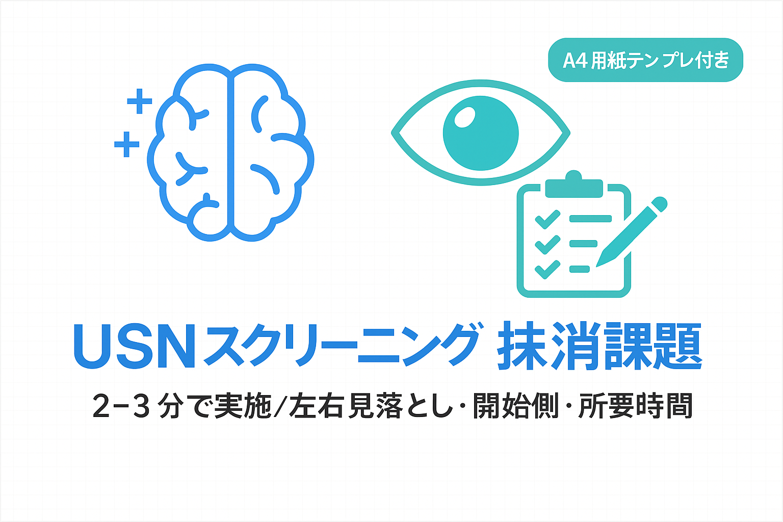 USN の抹消課題を2–3分で実施する手順と判定指標(左右見落とし・開始側・所要時間)を整理。品質管理の落とし穴と、コピペで使える所見テンプレも掲載。