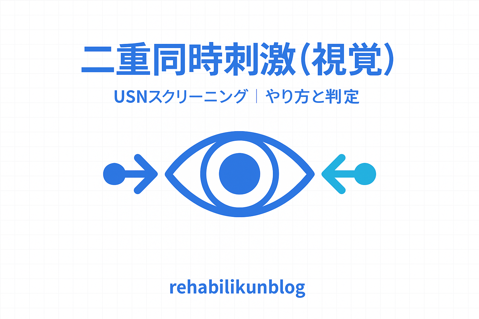 USN スクリーニングの二重同時刺激(視覚)の実施手順と判定指標、ランダム順の作り方、コピペで使える所見テンプレ、落とし穴と品質管理を解説。