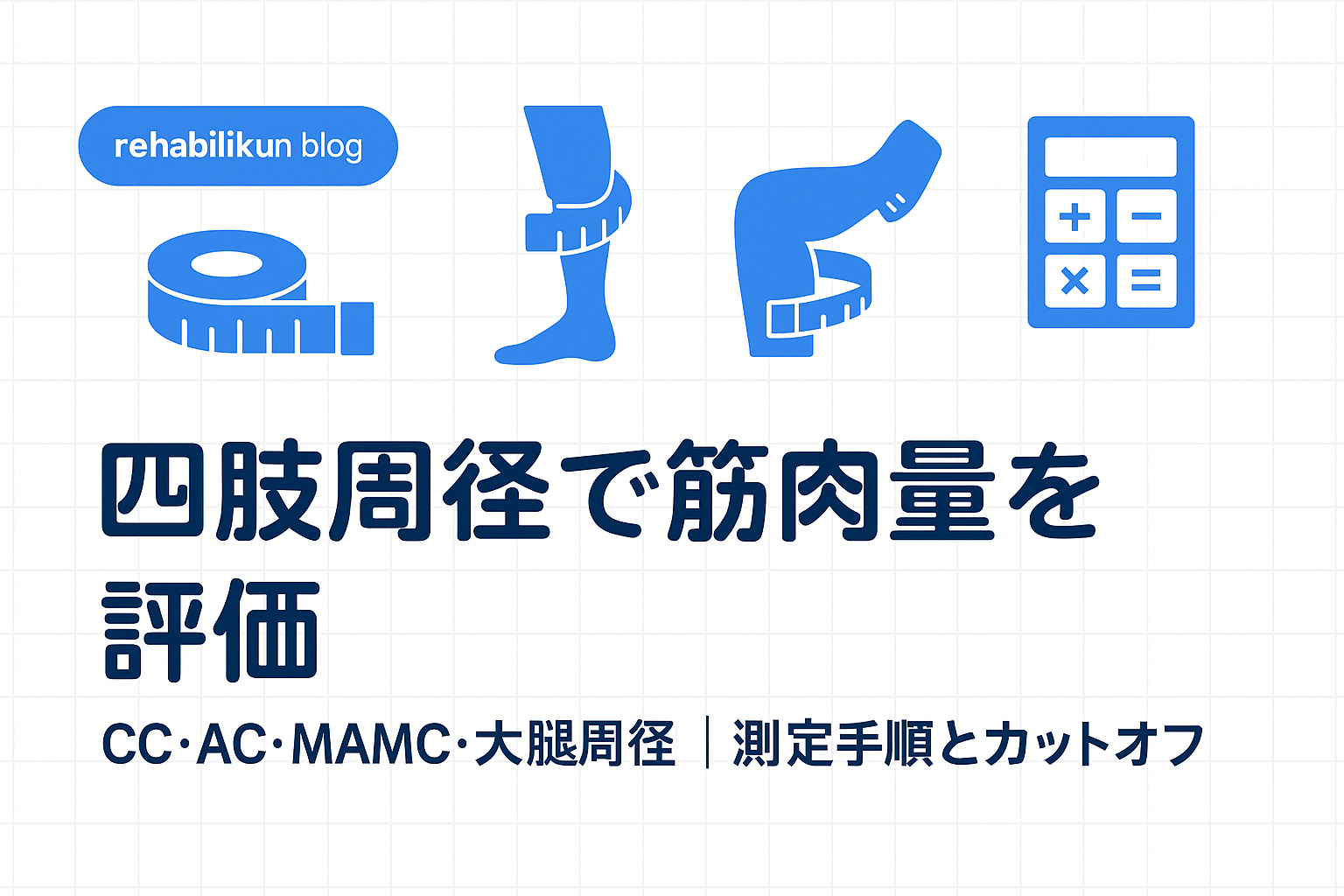 下腿周囲長(CC)と上腕周囲長(AC)からの MAMC 計算で筋肉量を簡便評価。AWGS/GLIM の位置づけ、カットオフ、測定手順とミス回避ポイントを現場目線で解説します。