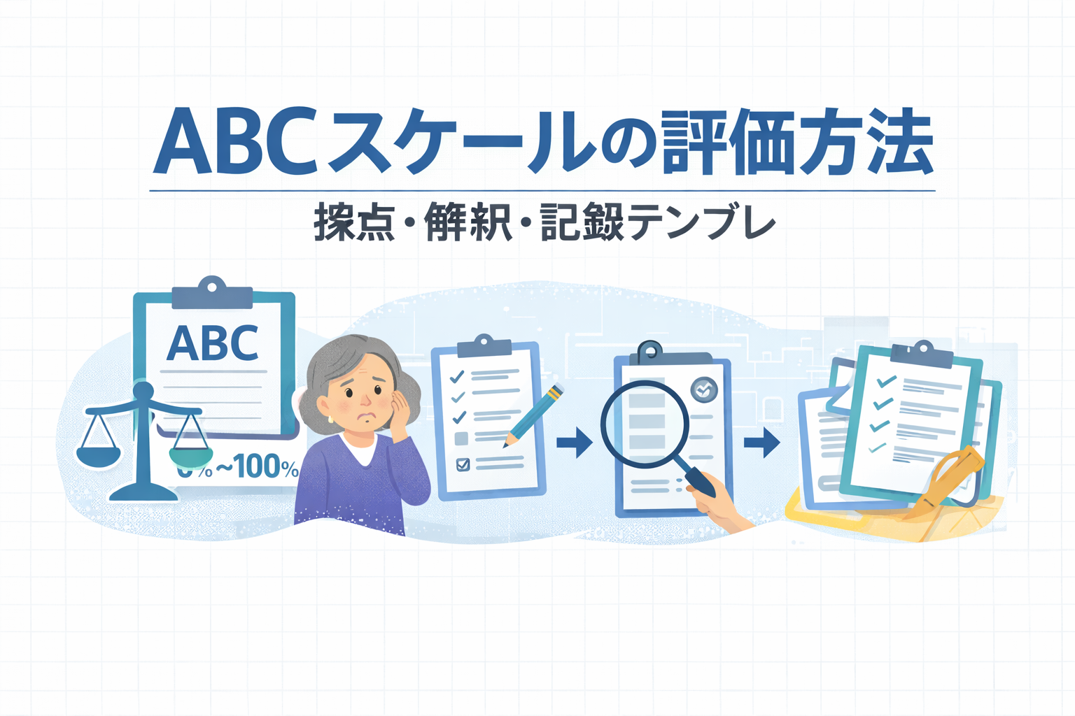 ABC は、TUG や BBS などの客観検査だけでは見えにくい「できる力」と「やる自信」のズレを拾うのに強い尺度です。運用のコツは、①基準期間(最近 1〜2 週)を固定し、② 0〜100% の意味づけを揃え、③平均(%)+低値の場面をセットで記録することです。