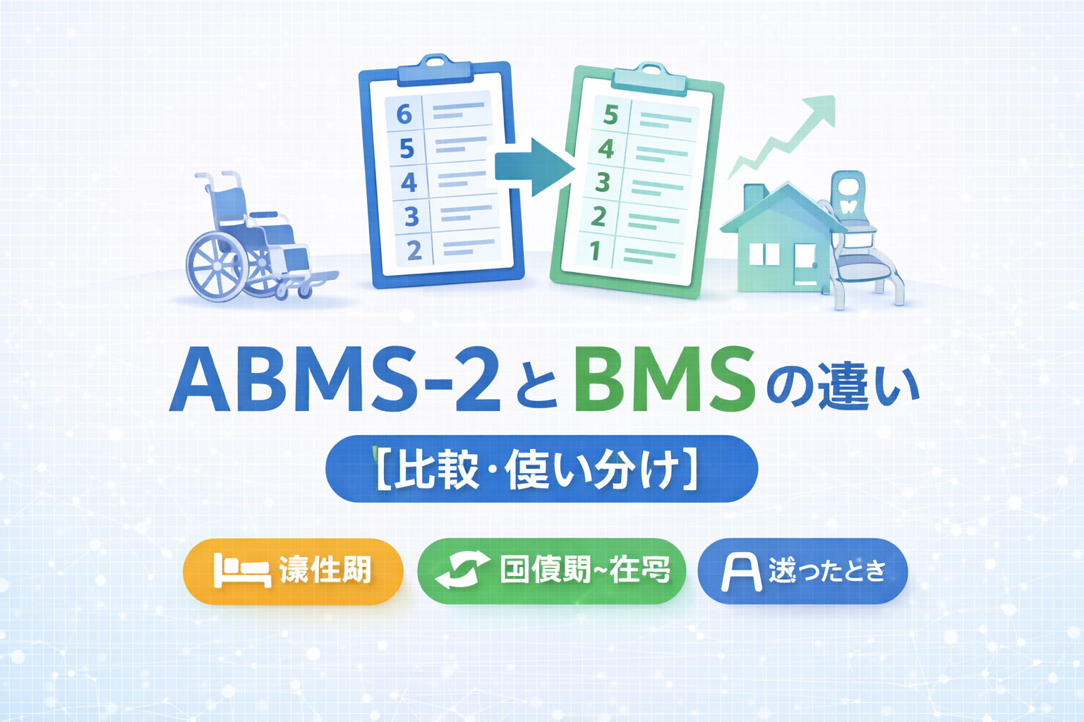 どちらも基本動作ですが、 ABMS-2 は最小限の 5 項目で早く共有する設計、 BMS は基本動作を広めに分解して介入へつなぐ設計です。よって「どっちが優れているか」ではなく、病期と目的で選びます。