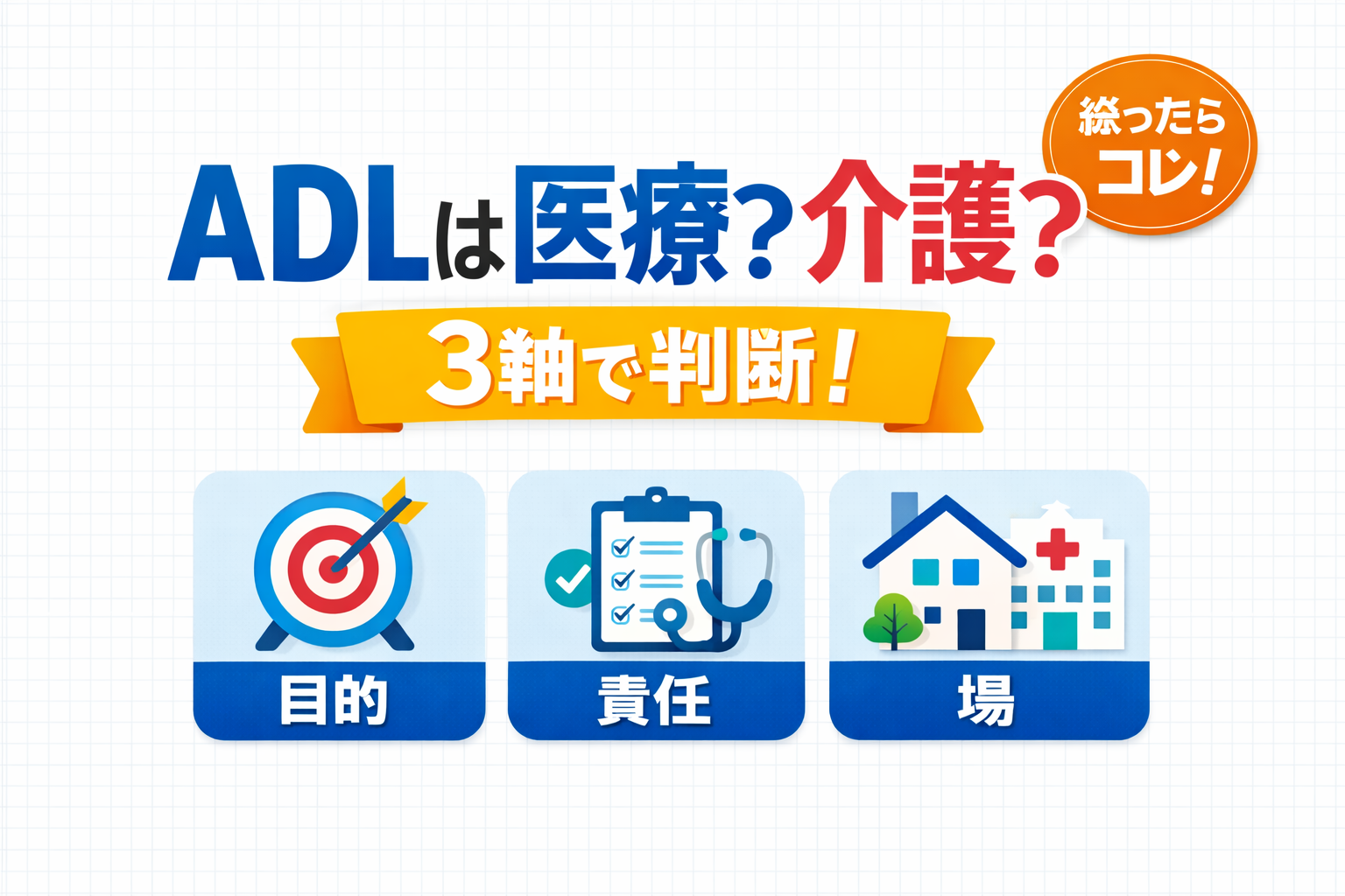 ADL が医療寄りか介護寄りかを決めるときは、制度名から入るより、次の順番で確認するとブレにくいです。