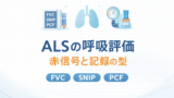 ALS の呼吸評価は、数値の良し悪しだけでなく日常の負担(会話・更衣・移動で息が切れる)とセットで判断します。初回は “危険の拾い上げ” を優先し、必要に応じて測定と介入(呼吸介助、排痰、 NIV の検討など)につなげます。