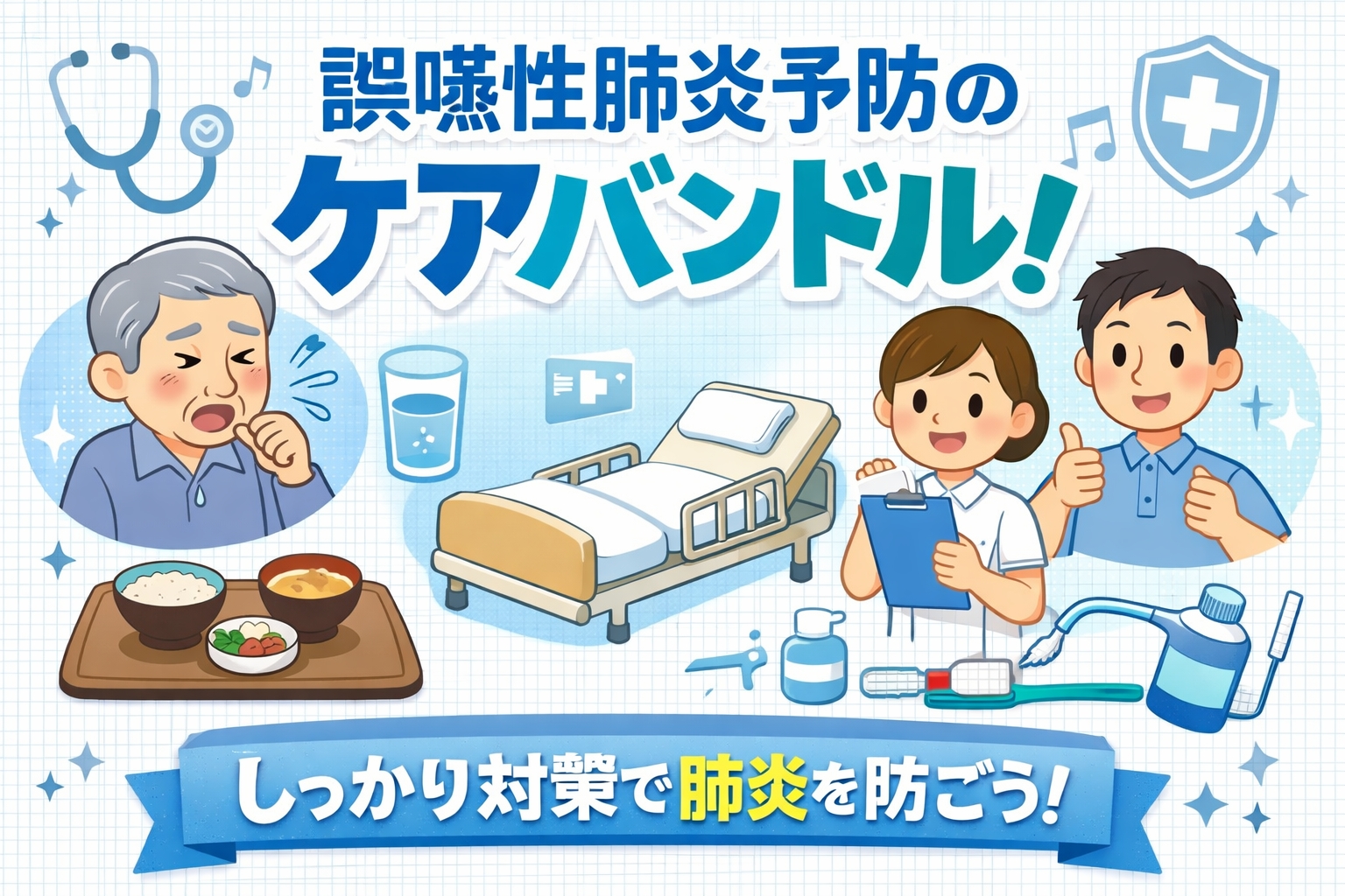 この記事は、誤嚥性肺炎リスクが高い高齢者に対して、毎日何を見て、どの順番で整え、どう記録するかを決めるための実務ページです。結論としては、予防は単発の口腔ケアや離床ではなく、体位・口腔・離床活動・呼吸・咳嗽排痰・水分栄養・服薬と覚醒を束ねた「バンドル」で回したほうが、抜け漏れを減らしやすいです。