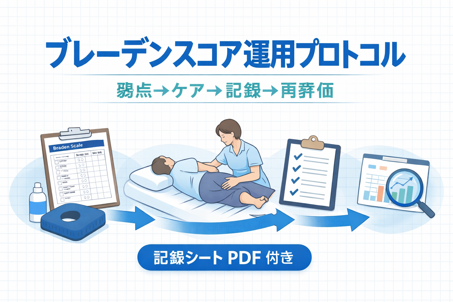 本記事は Braden 関連 3 本立てのうち「運用プロトコル編」です。採点の基本や点数の見方は総論、スコア帯ごとの優先順位は別記事に任せ、本稿では弱点項目 → 即時ケア → 記録 → 再評価の順番を迷わず回すことに絞ります。