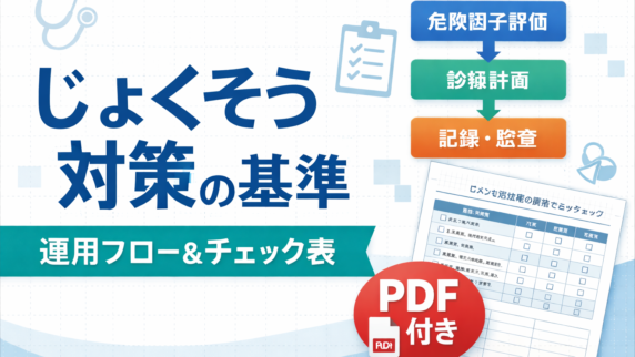 褥瘡対策の基準を、対象患者・診療計画・記録の流れで整理。運用フロー図とセルフチェック表 PDF 付きで、監査前の確認ポイントを PT 向けにわかりやすくまとめました。