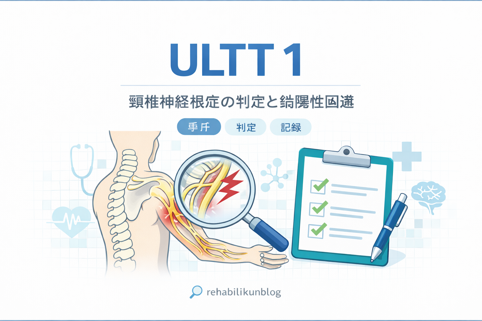 研究では、ULTT を含む上肢神経ダイナミクステストの診断精度が検討されており、臨床では単独ではなく組み合わせ(クラスタ)で使う前提が現実的です。([turn0search2](https://pubmed.ncbi.nlm.nih.gov/34298491/) [oai_citation:5‡PubMed](https://pubmed.ncbi.nlm.nih.gov/34298491/?utm_source=chatgpt.com))