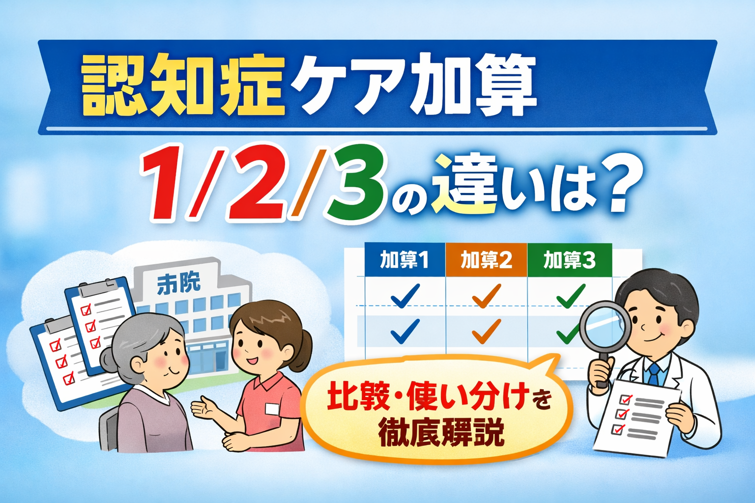 認知症ケア加算 1 / 2 / 3 の違い【比較・使い分け】|施設基準を “病院の現実” で選ぶ