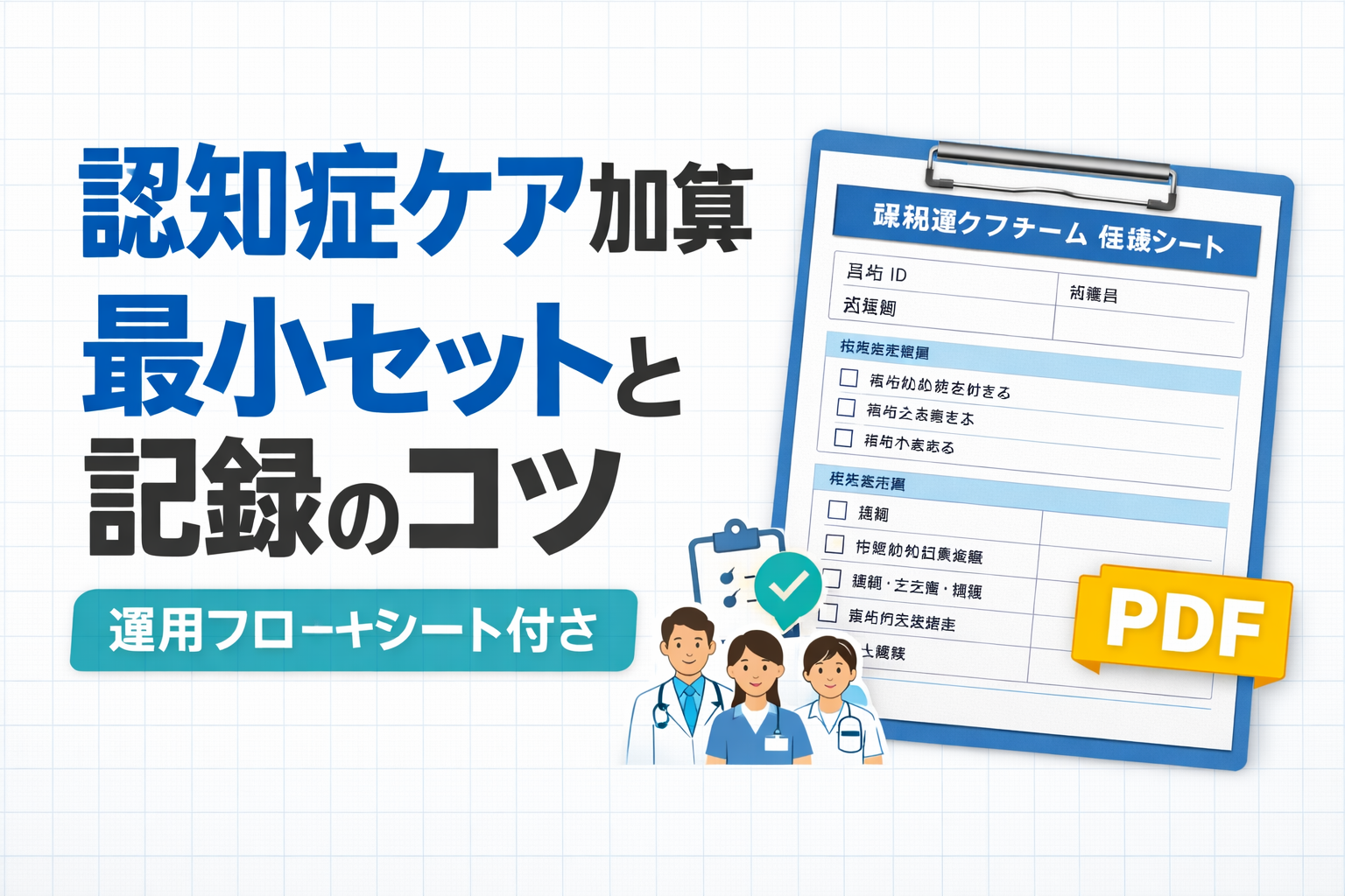 このページでは「施設基準を回す最小セット」までにとどめ、区分の違いは別ページで確認するのがおすすめです。比較は 認知症ケア加算 1/2/3 の違い(比較・使い分け) にまとめています。