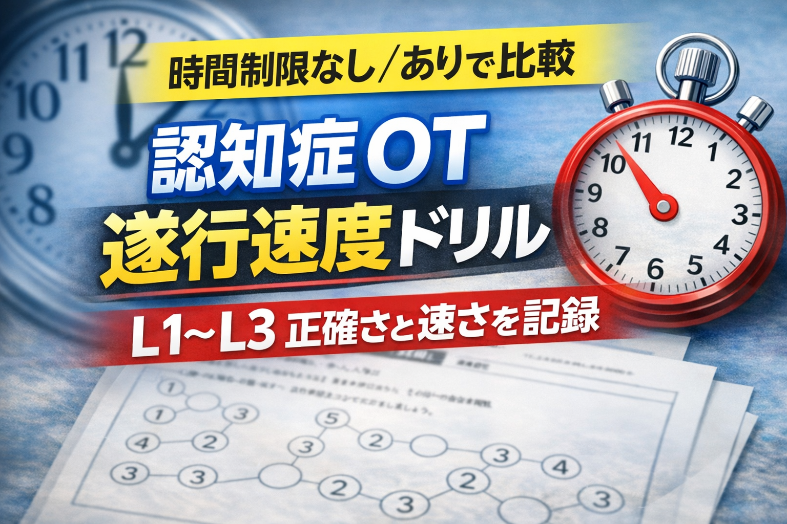 認知症 OT の遂行速度ドリルは「時間制限なし→あり」の 2 段運用で比較精度が上がります