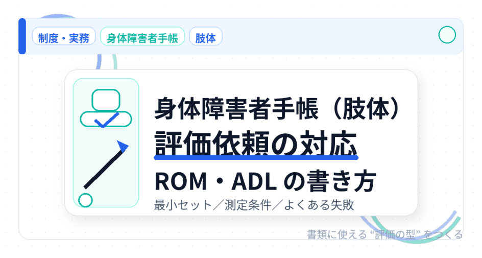 ※本記事は「身体障害者手帳(肢体)」の評価依頼に限定し、障害年金や介護保険の書類は別記事で扱います(必要に応じて下記リンク先へ)。