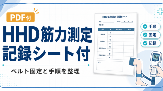 HHD筋力測定は、条件固定と記録の型で再現性が変わります。ベルト固定、測定回数、単位、記録シートをPT向けに整理。