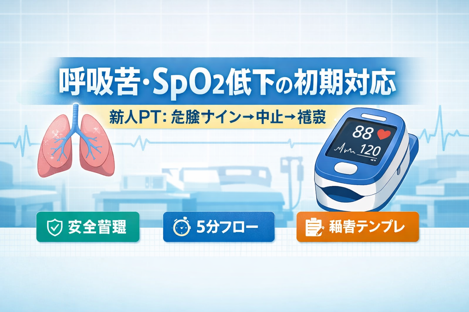呼吸苦・ SpO2 低下の初期対応|新人 PT は「危険サイン→中止→相談」の順番を固定する