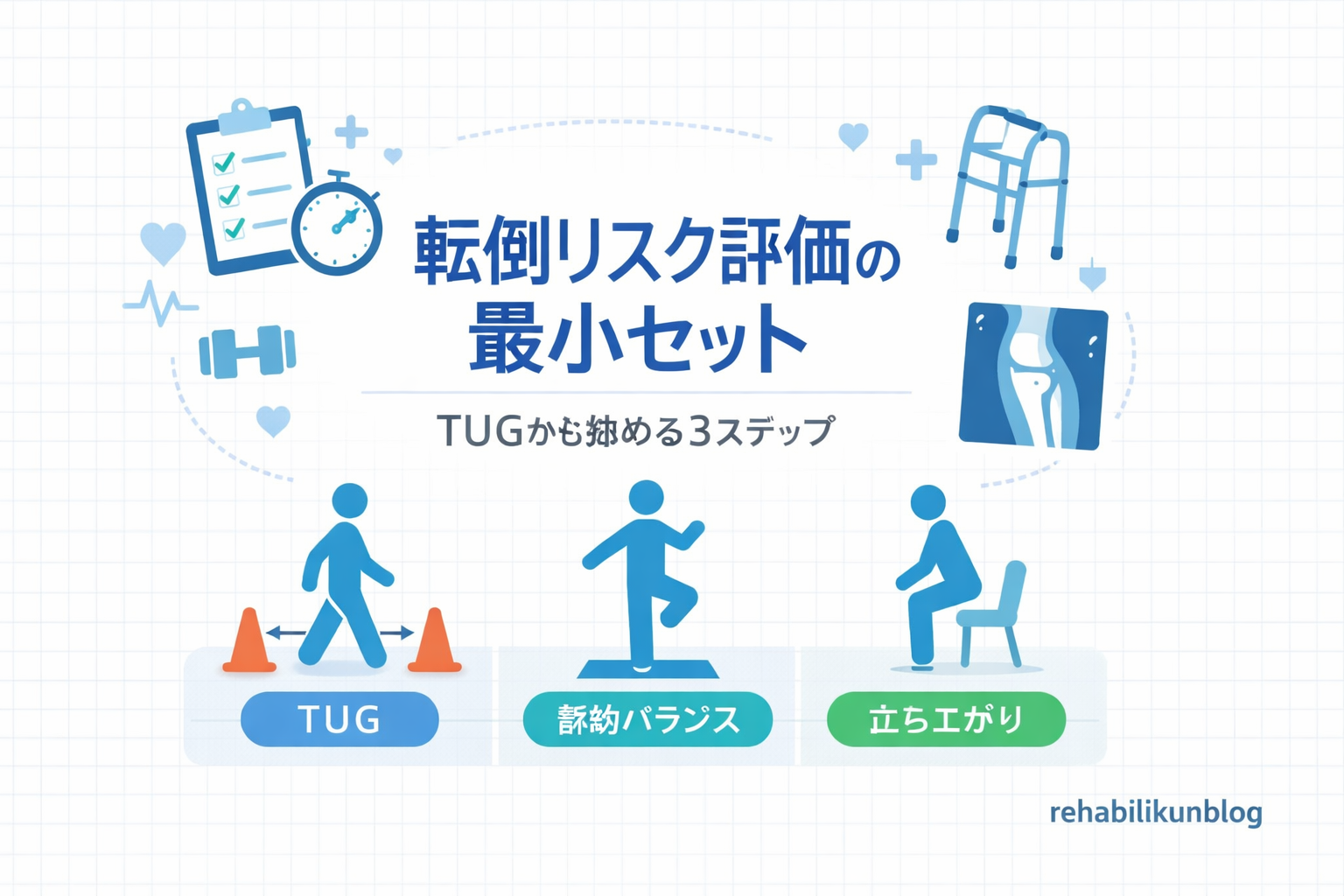 転倒リスク評価の最小セット| TUG から始める 3 ステップ