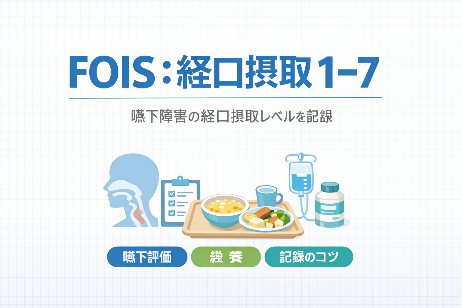 FOIS の強みは、食形態の細分類よりも「食事として成立しているか」「補助栄養の併用があるか」を軸に、機能レベルを俯瞰できる点です。とくに転院・退院の局面では、詳細な嚥下所見よりも “今の摂取レベル” の共有が求められるため、FOIS が効きます。:contentReference[oaicite:8]{index=8}