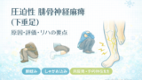 | 起点(病歴) | 脚組み、腓骨頭の圧、ギプス、長時間の同一肢位 | 腰部〜殿部痛、体幹肢位で増悪(例:咳で響く) | まず “圧迫エピソード” の有無 | 圧迫あり/なし、腰痛あり/なし |