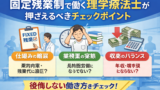 現場で成果を出しやすいのは、①入口で拾う(チェック・握力・歩行)、②介入を二本立てにする(運動+非運動要素)、③再評価条件を固定する、の 3 点です。資格取得そのものより、運用の型が残ると組織に価値が残ります。