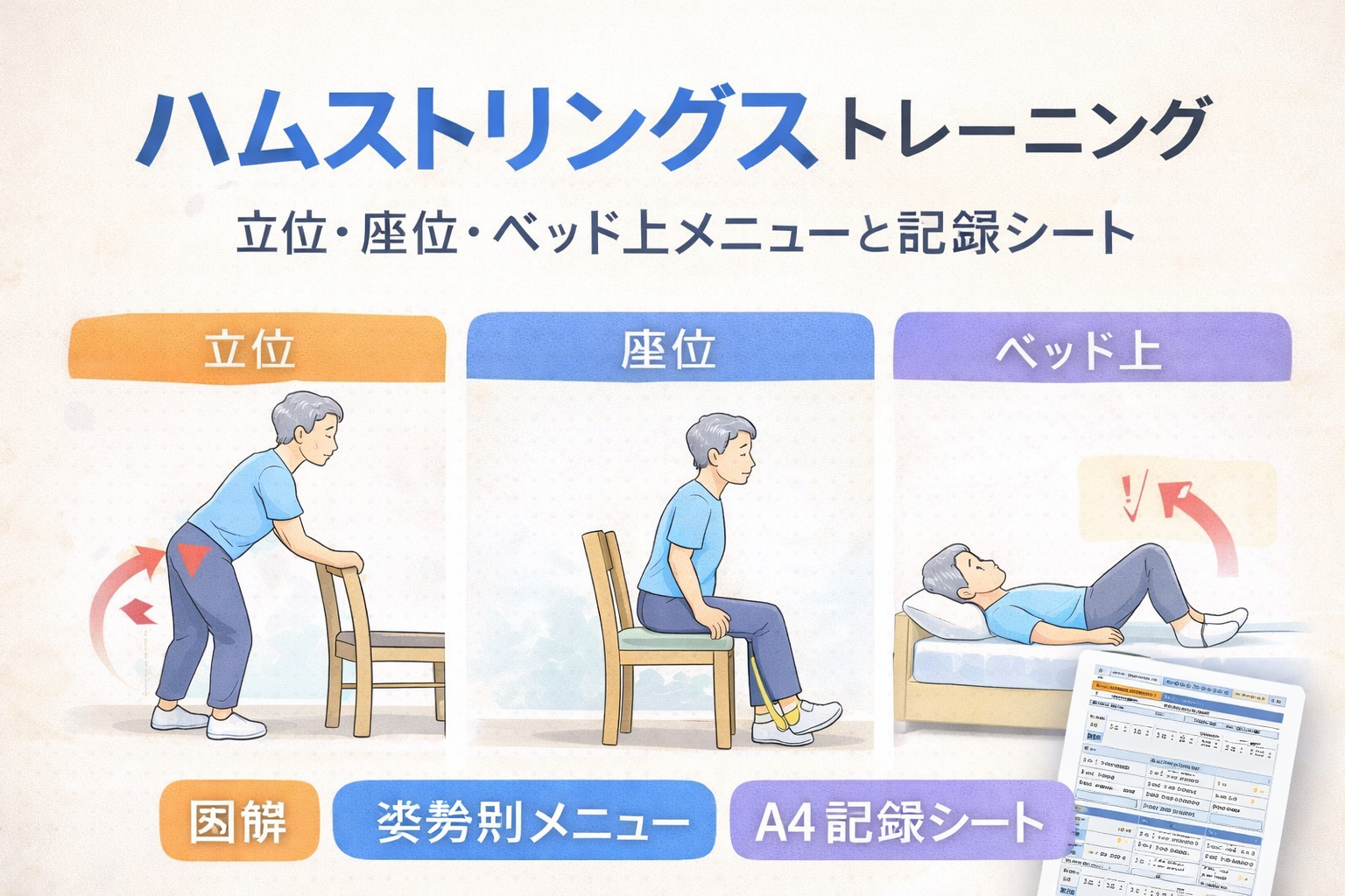 ハムストリングストレーニング|姿勢別メニューと臨床完結シートで「説明〜記録」を 1 枚化