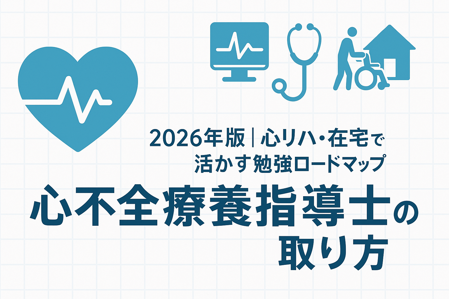 一方で、資格取得には学会入会・ e ラーニング受講・症例報告 5 例・認定試験など、数年単位での準備が必要になります。「心リハ指導士や他の資格との優先順位は?」「症例が少ない施設でも取れるの?」といった悩みも出てきやすいところです。本記事では、2026 年に初回受験を目指す医療職を想定し、心不全療養指導士の位置づけ、受験資格と取得までの流れ、年間スケジュールの組み方、勉強ロードマップ、心リハ・在宅現場での活かし方までを一気通貫で整理します。
