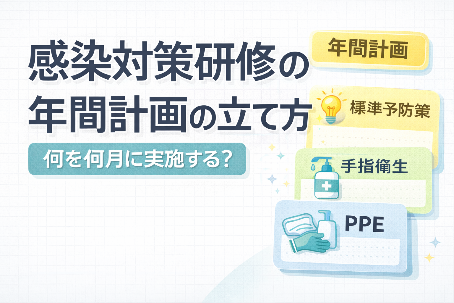 感染対策研修の年間計画は、「年 2 回やればよい」と回数だけで考えると、実務では回りにくくなります。現場で大切なのは、どのテーマを、どの時期に、誰向けに、どの方法で実施するかを年間で見通し、記録や未参加フォローまでつなげておくことです。