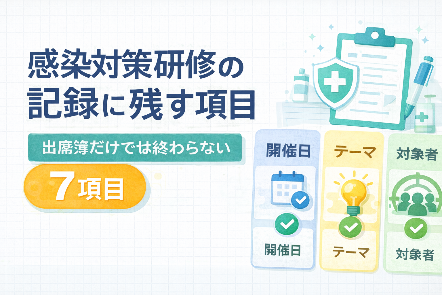 感染対策研修の記録で最初に固定したいのは、毎回同じ骨組みで残すことです。担当者ごとに記録の粒度が変わると、研修を実施した証拠は残っても、未参加者の補完や次回改善の確認がしにくくなります。