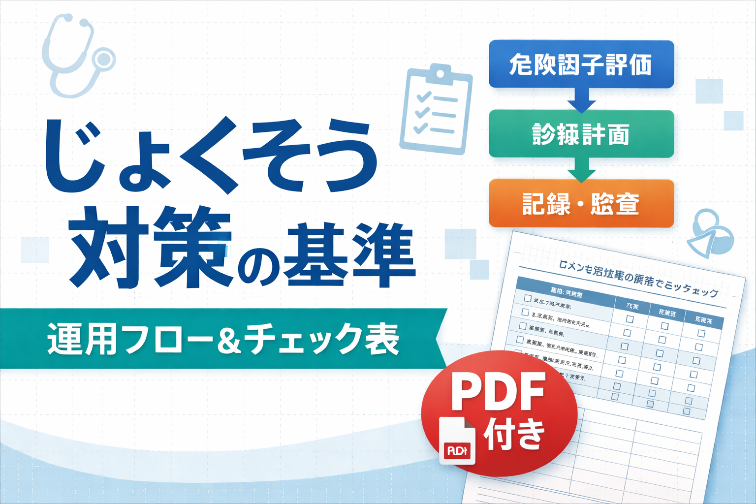 褥瘡対策の基準で現場が止まりやすいのは、通知の文言そのものよりも「誰を対象に危険因子評価するか」「危険因子あり/褥瘡ありを誰が診療計画へつなぐか」「何を資料として残せば説明が通るか」が曖昧なときです。本記事は、その迷いを 対象 → 計画 → 記録 の 3 つに絞って整理するページです。