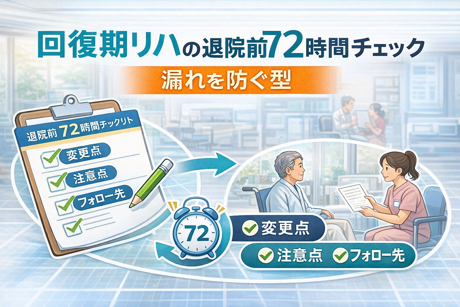 結論:退院前 72 時間は「変更点・注意点・フォロー先」を定型で揃えると漏れません