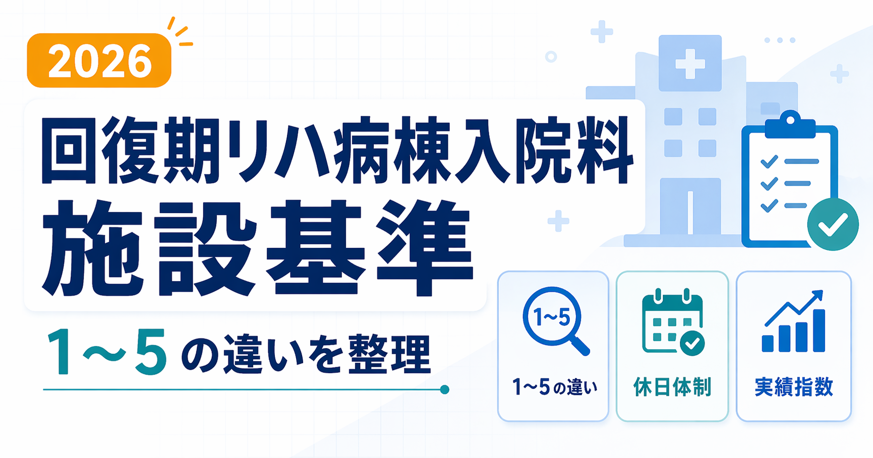 2026 年改定では、実績指数の見直し、入院料 2 ・ 4 への実績指数要件の導入、回復期リハビリテーション強化体制加算の新設、高次脳機能障害患者の退院支援体制など、病棟運用に直結する論点が追加されました。病棟機能の全体像から整理したい場合は、入院基本料とは?療法士向けに病棟機能から解説 を先に読むと位置づけがつかみやすくなります。
