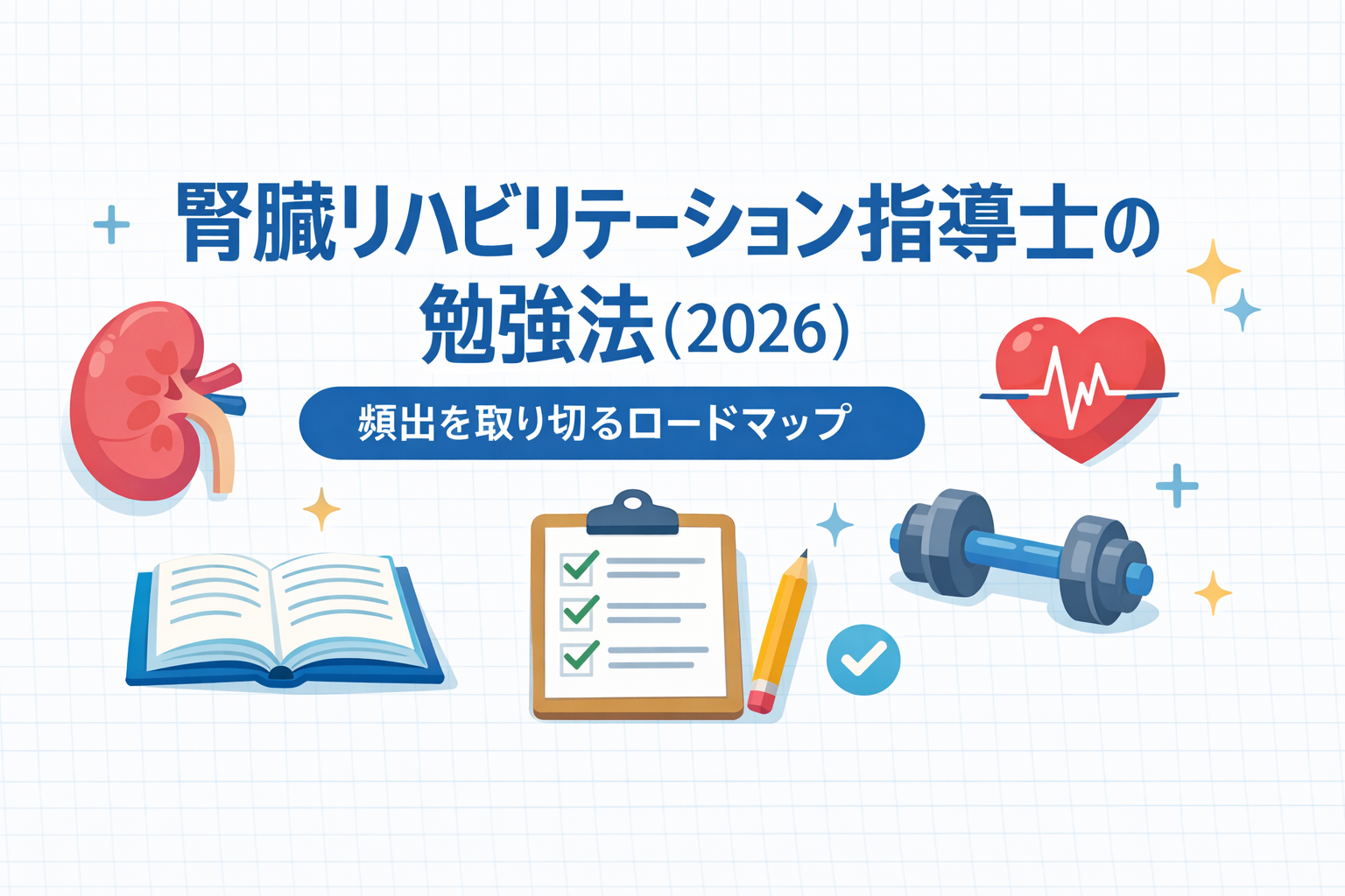 腎臓リハビリテーション指導士の対策は、知識を「読む」より「解ける形に変換」したほうが得点が安定します。特に CKD/透析の運動療法は、用語暗記だけだと負荷設定・中止基準・モニタリングで取りこぼしが出やすい領域です。