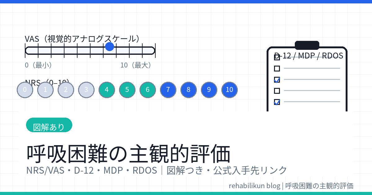 - 呼吸困難の主観的評価【体系と使い分け・使い方】NRS/VAS・D-12・CDS・MDP・RDOS