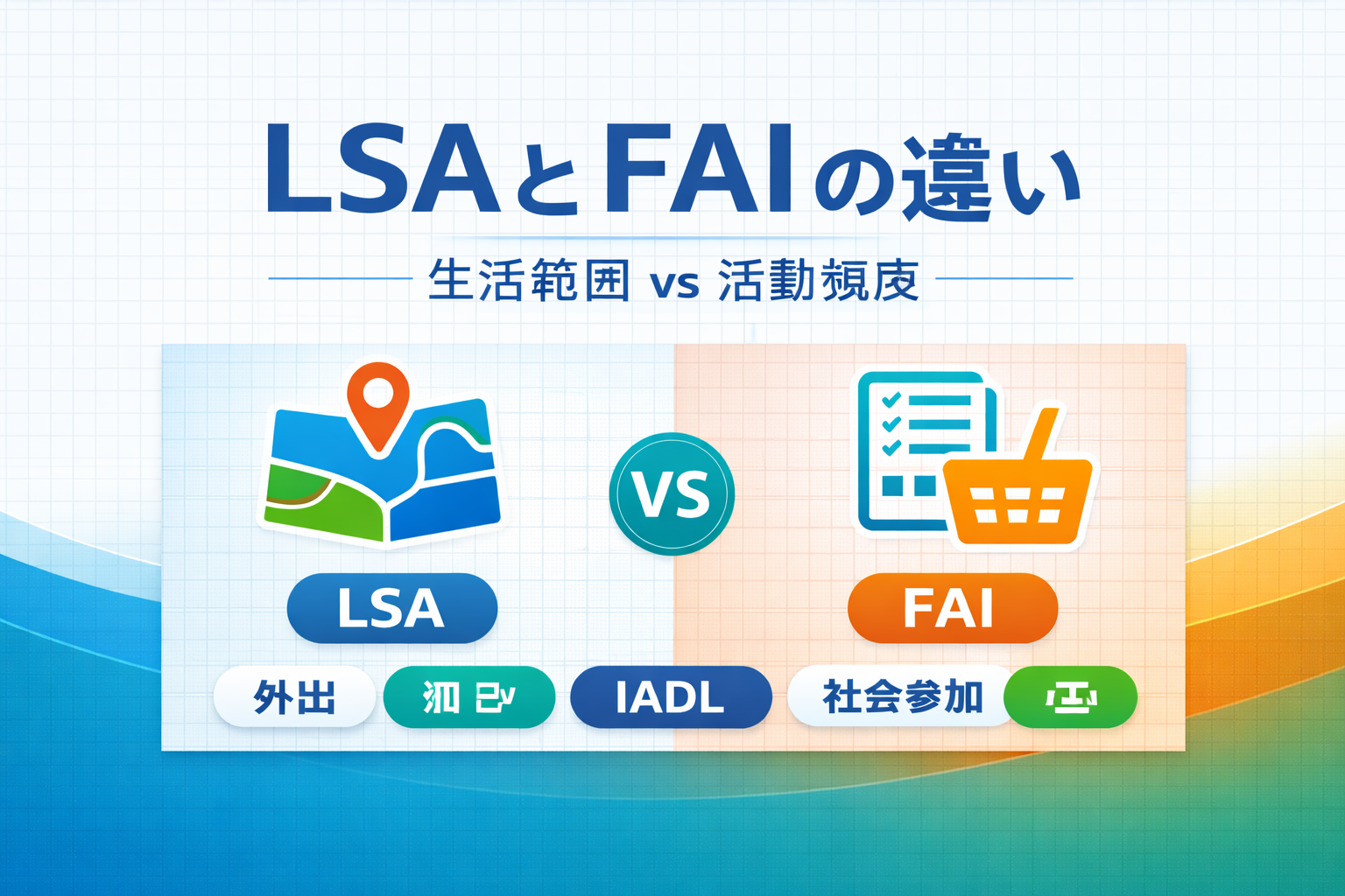 | 代表的な使いどころ | 退院後の外出低下、社会参加の減少 | 家事・買い物・余暇の再開状況 | 外出の入口= LSA / 生活の再構築= FAI |