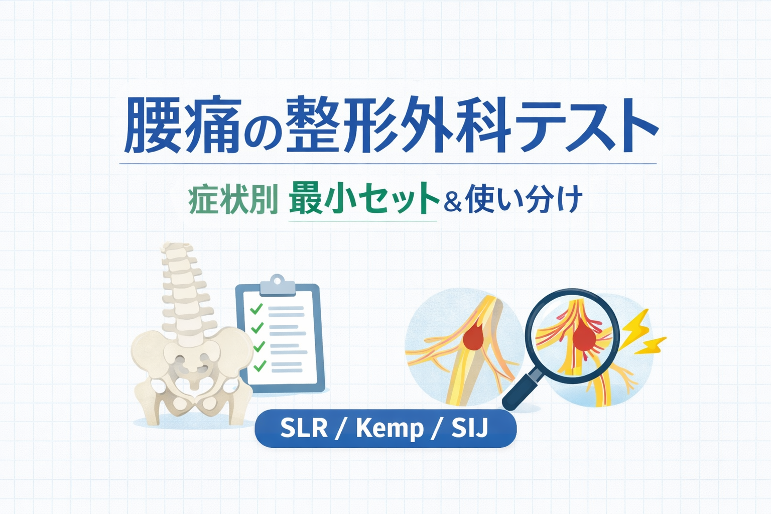 腰痛の整形外科テスト|症状別 “最小セット” と使い分け( SLR / Kemp / SIJ )