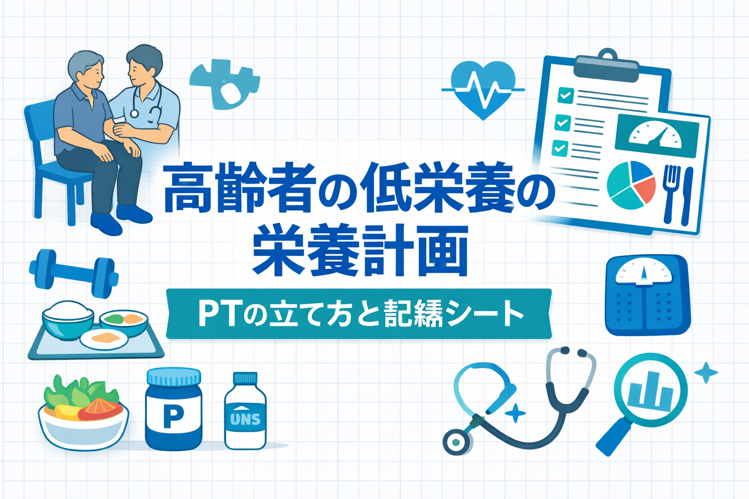 高齢者の低栄養では、「何 kcal・何 g/kg/日から始めるか」だけでなく、「どの機能指標で効いているか」を同時に決めないと、食事・ ONS ・運動が別々に走りやすくなります。本記事は PT が初回 1 週間で決めるべき 栄養目標・運動目標・再評価の型 を、現場で使いやすい順番で整理します。