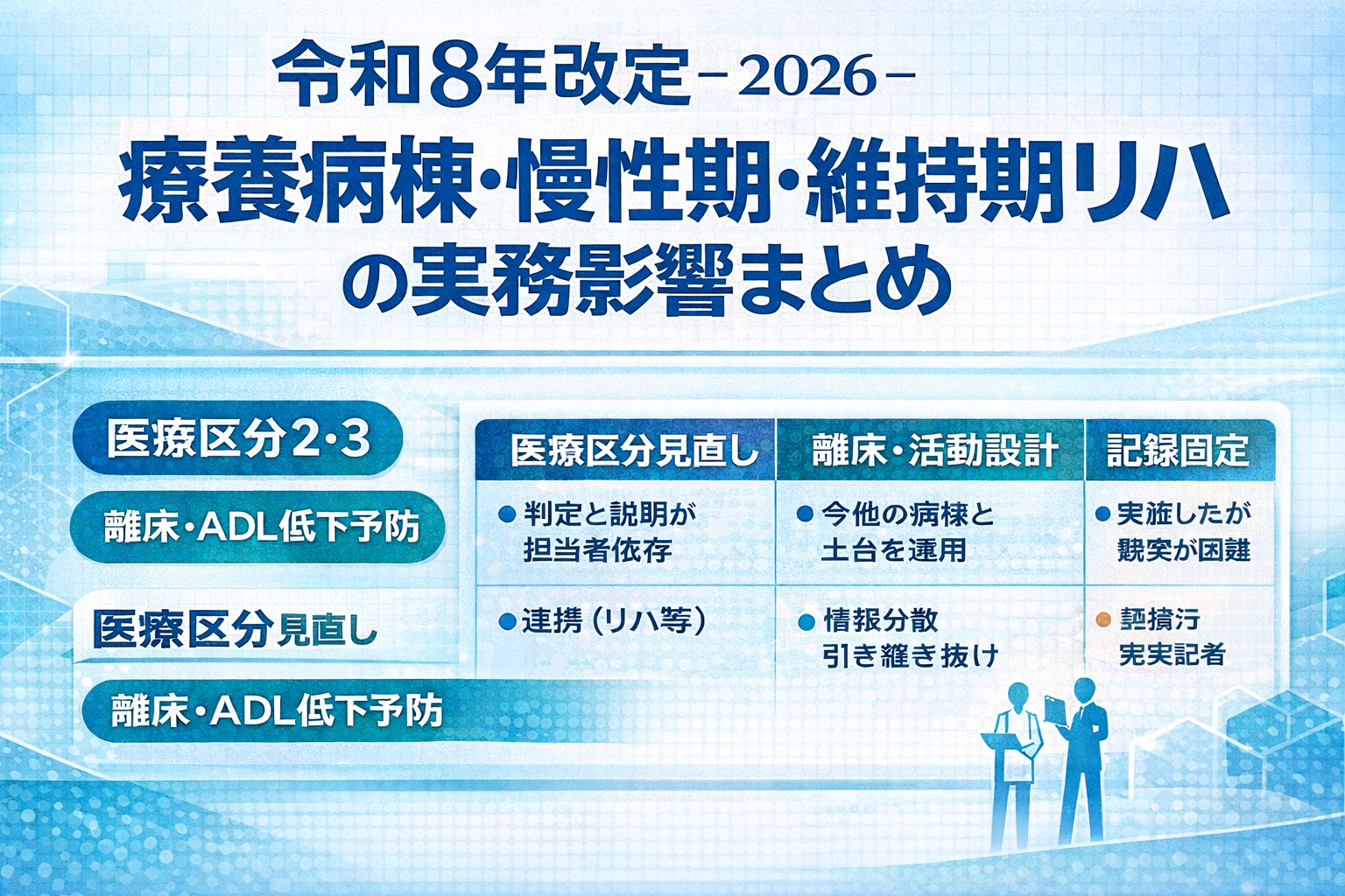 令和 8 年改定は「療養病棟・慢性期・維持期で ADL 低下を防ぐ運用」を強めるメッセージです