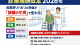 おすすめは、①対象基準を 1 枚化 → ②連携の起点(起点カンファ)を固定 → ③記録の 1 行テンプレを統一、の順です。シリーズで読むと改定対応の全体像も掴みやすくなります。