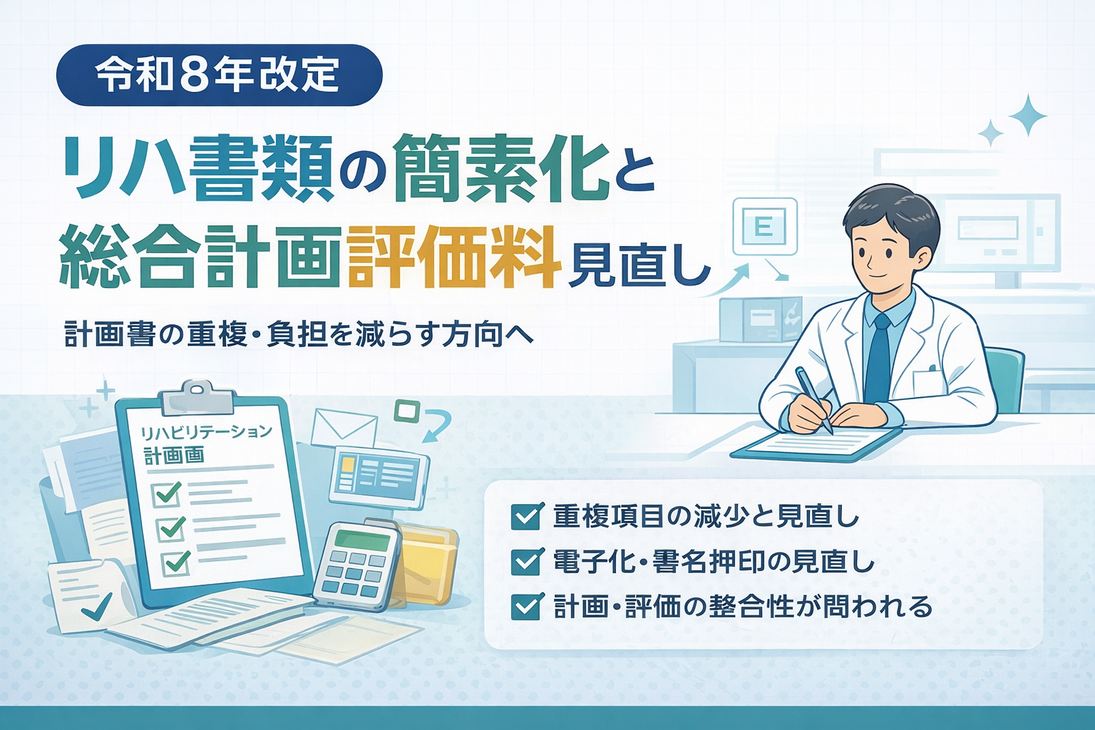 令和 8 年改定:リハ書類の簡素化と「総合計画評価料」見直し
