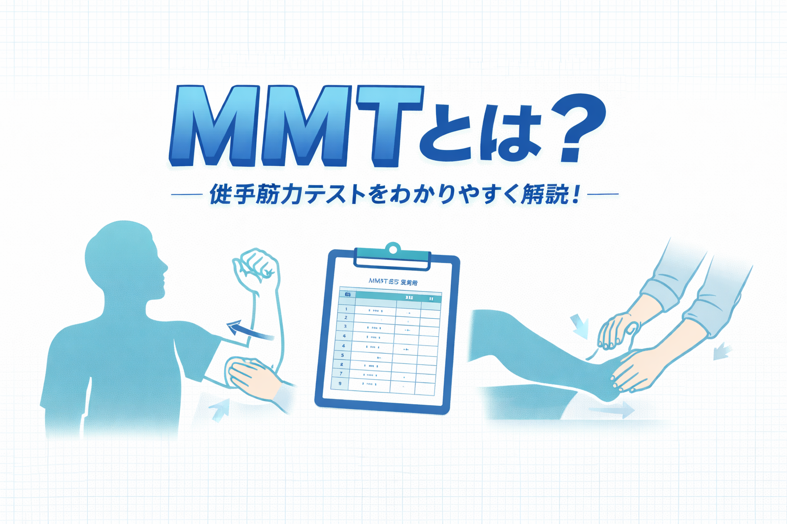 - MMT(徒手筋力テスト)は「やり方」と「記録」をそろえて初めて使える評価になります