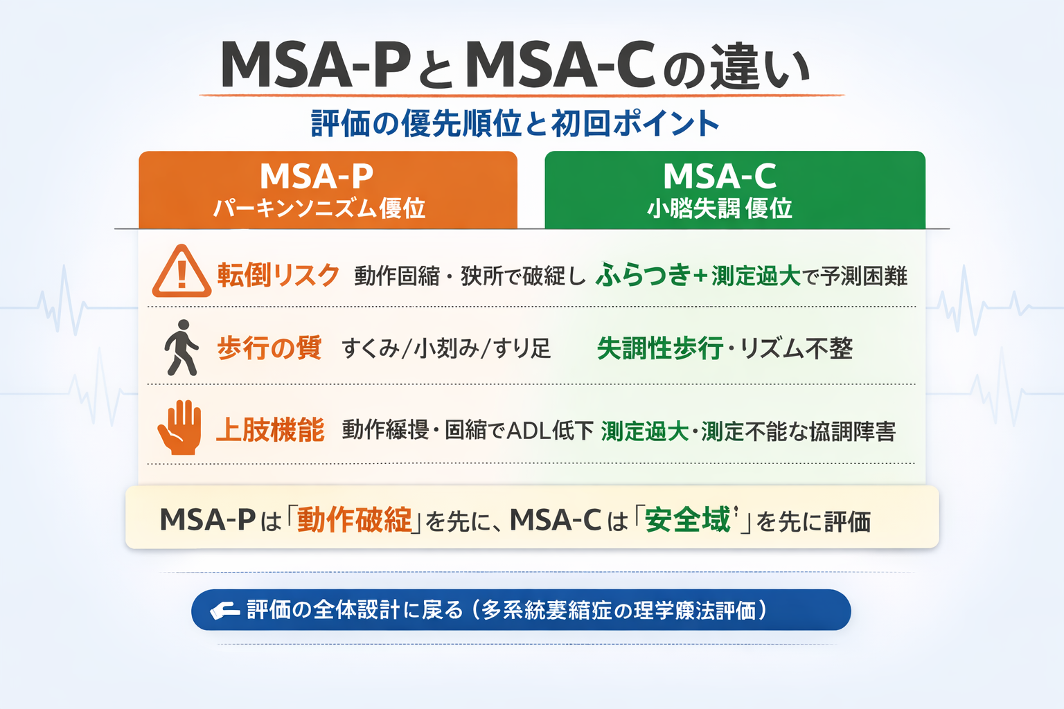 MSA-P / MSA-C の違いを「初回評価の優先順位」で比較(成人・理学療法の実務目線)