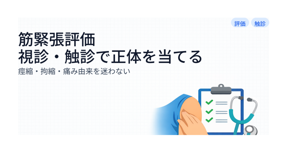 筋緊張( muscle tone )の評価は、スケールを付ける前に「抵抗の正体」を当てられると精度が上がります。視診と触診だけで、①痙縮(速度依存の反射要素)、②拘縮(組織短縮)、③痛み・防御収縮、④浮腫・軟部組織の硬さをある程度切り分けられます。