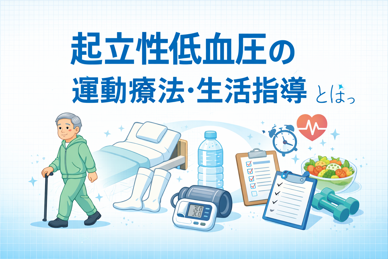 起立性低血圧の運動療法では、「筋ポンプの賦活」と「前兆時の自己対応」の両方を教えることが大切です。立位や歩行だけを増やすのではなく、臥位・座位で安全に始めて、半臥位・立位へつなぐ 形にすると、失敗が減りやすくなります。