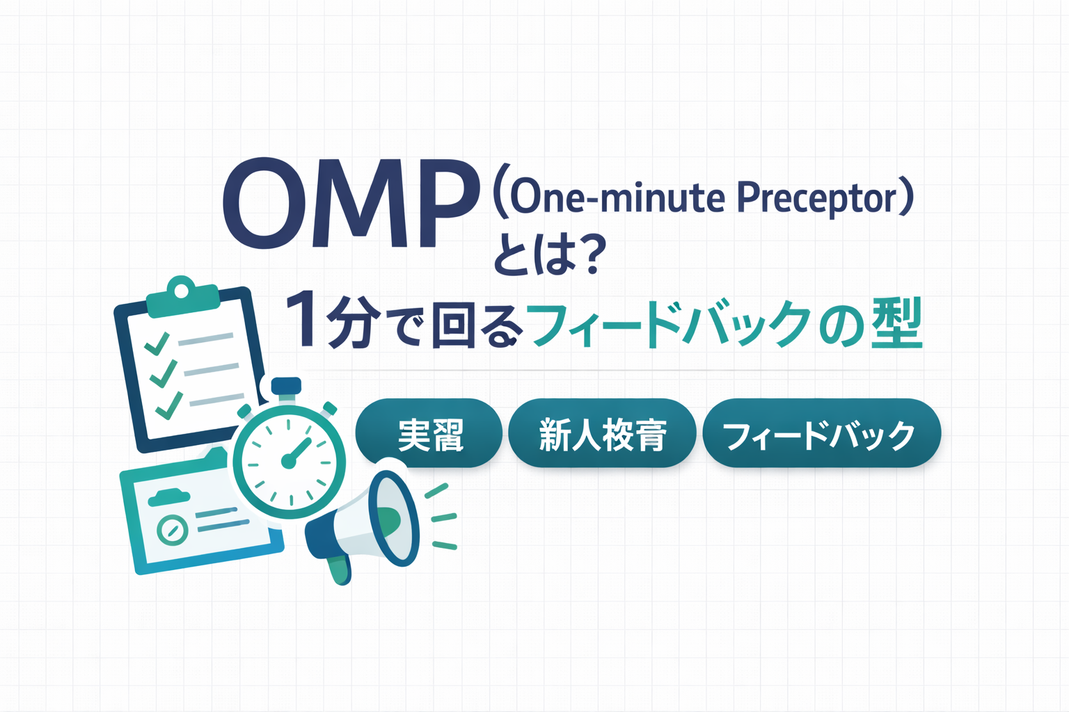 OMP( One-minute Preceptor )は、忙しい臨床の中でも「学習者の思考を引き出す → 根拠を確認する → 汎用ルールを教える → 具体的に褒める → 具体的に修正する」を短時間で回すための指導モデルです。実習・新人指導・ OJT の “その場” を、ただの助言で終わらせず、再現性のある学びに変えられます。