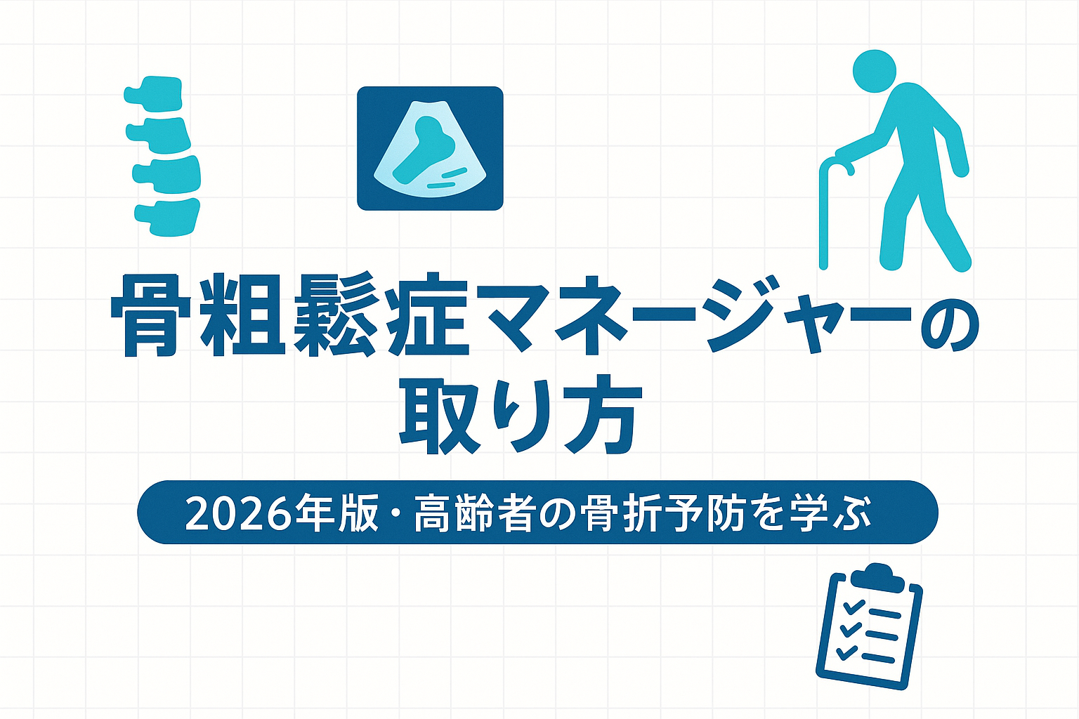 一方で、学会参加や指定研修の受講、症例・活動報告の提出、筆記試験など、数年単位での準備が必要となり、「どこから手を付けてよいか分からない」「整形外来がない施設でも目指せるのか」と悩む方も多いはずです。本記事では、2026 年の受験・認定をひとつの目安とし、骨粗鬆症マネージャーの位置づけ、受験資格と認定までの流れ、勉強ロードマップ、整形外科・回復期・在宅・施設など現場別の活かし方、よくある詰まりどころを整理します。
